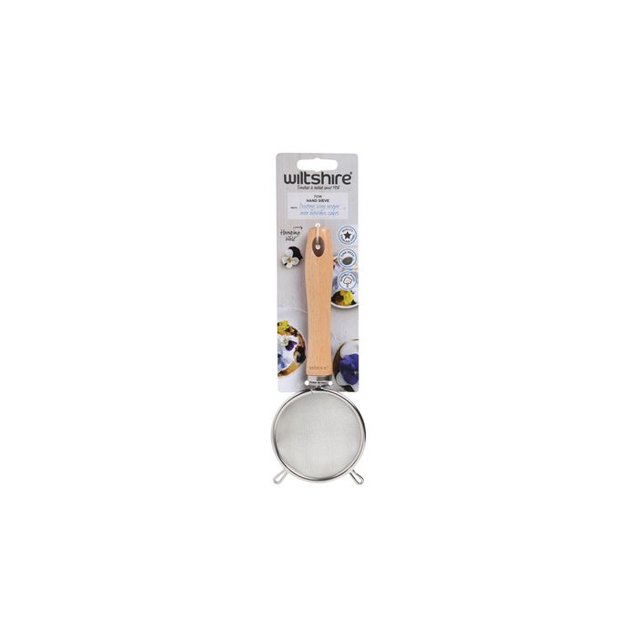 Wiltshire 70mm Hand Sieve is crafted using quality stainless steel for a long-lasting finish and the handle is made from durable beechwood for a secure grip. The handle even has a contoured finish to make holding it even easier.