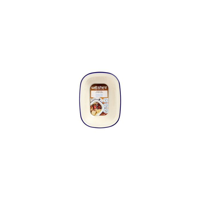 - WILTSHIRE PIE DISH-ENAMEL OBLONG BLUE RIM 400ml 160x110mm (*WLT40378*) = PACK OF 12 X EACHES