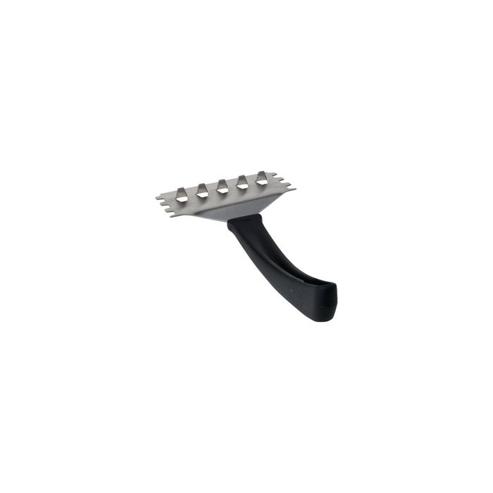 Tough, burnt-on food and fat is no match for this scraper. It removes it easily without scratching. It's flat, sharpened edge scrapes clean any hotplate surface. Raised teeth clean in-between the grills. The handle stays cool saving you from those nasty burns.