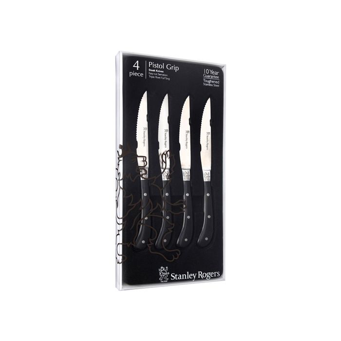- STANLEY ROGERS PISTOL GRIP STEAK KNIFE SET SS/BLACK 4pc230mm (*SR50750*) = PACK OF 4 X SETS