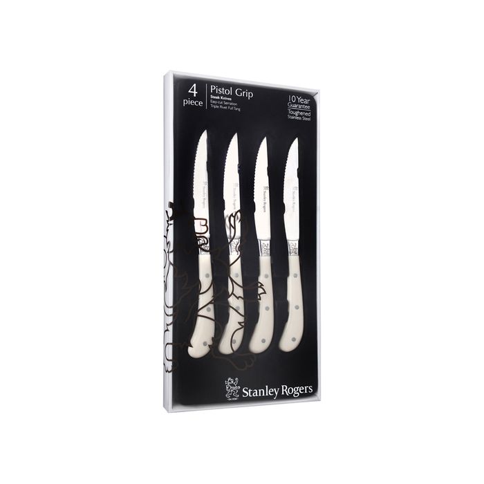- STANLEY ROGERS PISTOL GRIP STEAK KNIFE SET SS/CREAM 4pc230mm (*SR50751*) = PACK OF 4 X SETS