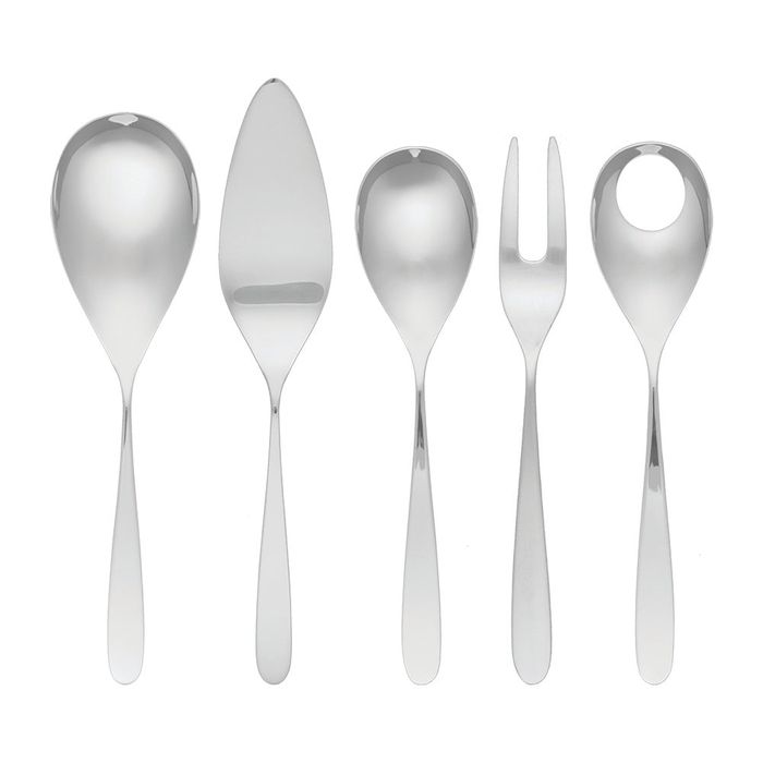 Beautifully crafted, Alaska combines elongated teardrop hollow handles with 18/10 stainless steel in a high mirror finish, providing a contemporary set of buffet serving utensils.