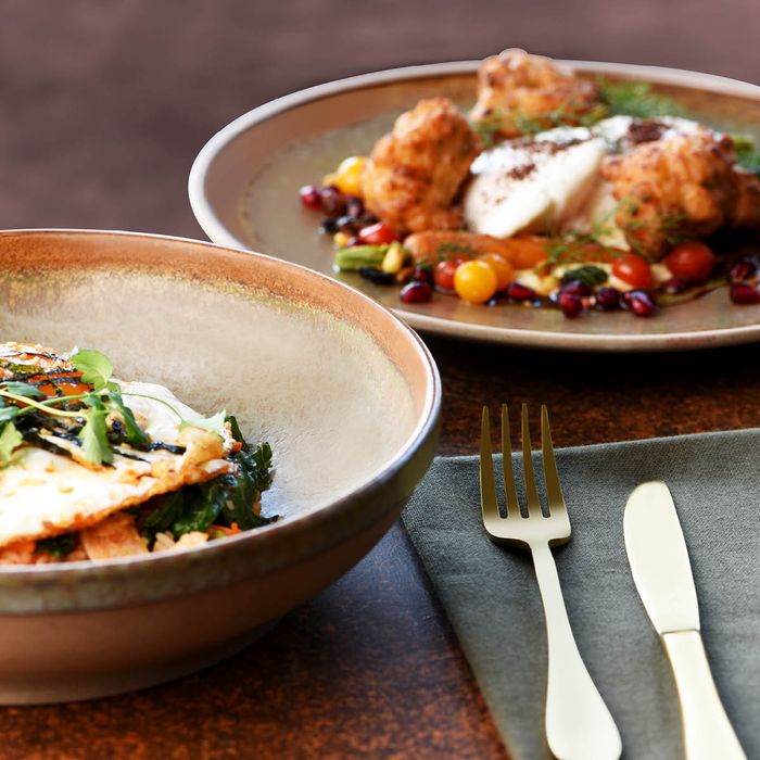 Made of clay that’s malleable and great for forming detailed shapes. Created in a two firing process where it becomes vitrified during the second firing, making porcelain an extremely durable dinnerware option that is dishwasher, microwave, and oven safe.