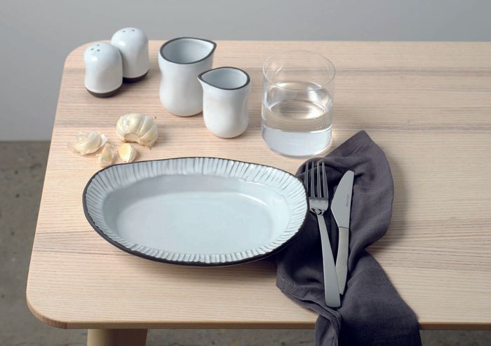 Made of clay that’s malleable and great for forming detailed shapes. Created in a two firing process where it becomes vitrified during the second firing, making porcelain an extremely durable dinnerware option that is dishwasher, microwave, and oven safe.