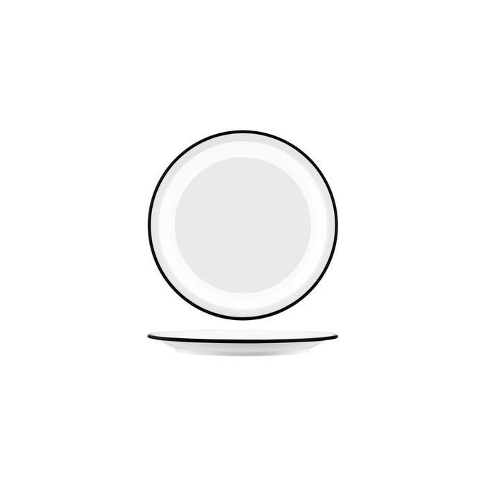 - JAB VINTAGE WHITE/BLACK RIM ENAMEL LOOK ROUND PLATE 190mm (*49950*) = PACK OF 6 X EACHES