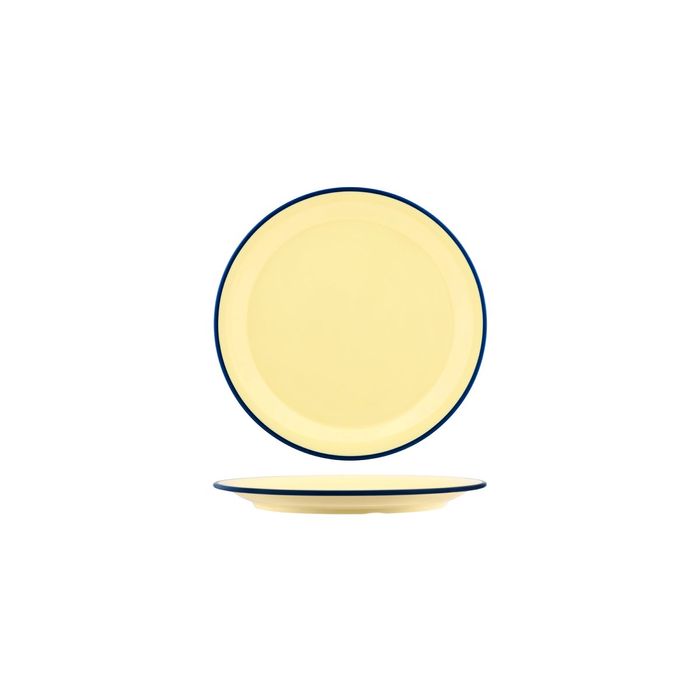 - JAB VINTAGE YELLOW/BLUE RIM ENAMEL LOOK ROUND PLATE 190mm (*49920*) = PACK OF 6 X EACHES