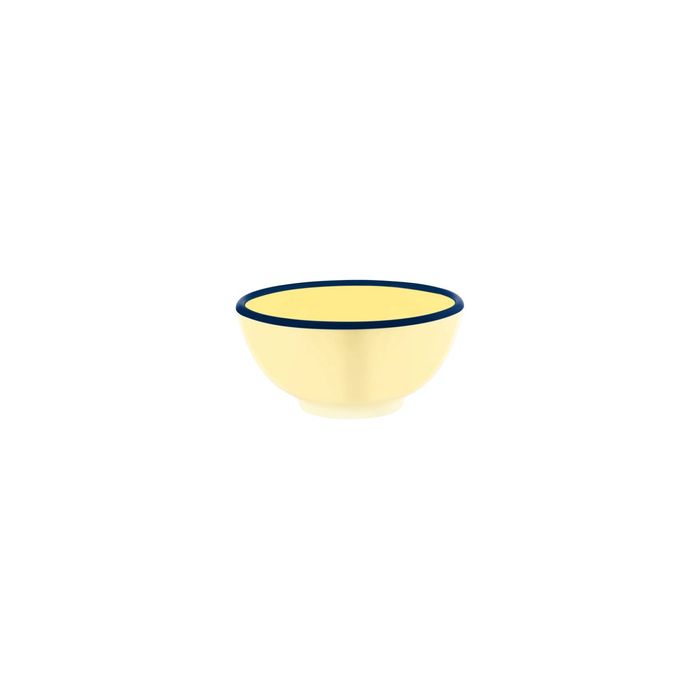 - JAB VINTAGE YELLOW/BLUE RIM ENAMEL LOOK ROUND BOWL 125x60mm (*49925*) = PACK OF 6 X EACHES