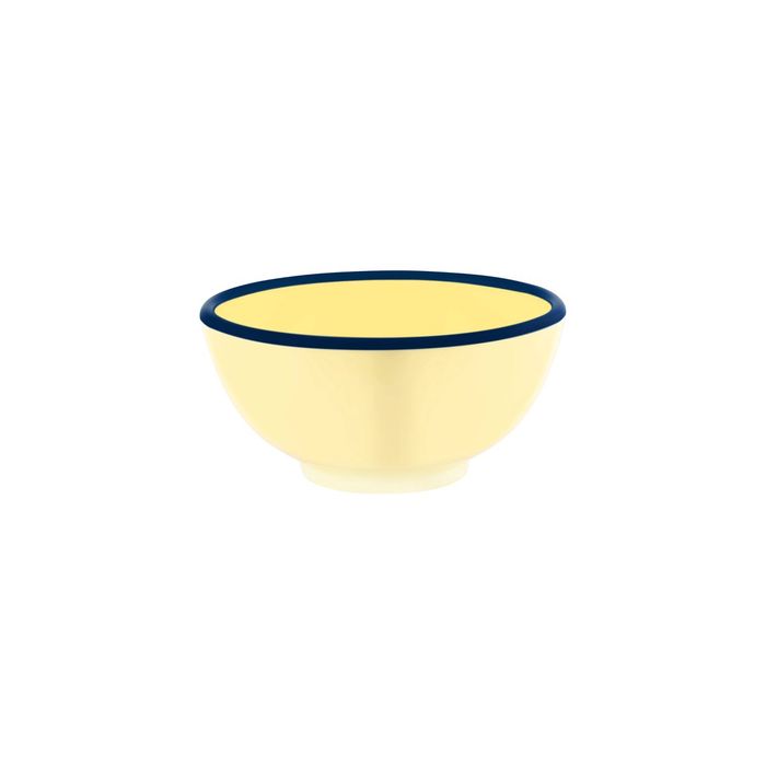 - JAB VINTAGE YELLOW/BLUE RIM ENAMEL LOOK ROUND BOWL 175x80mm (*49927*) = PACK OF 6 X EACHES