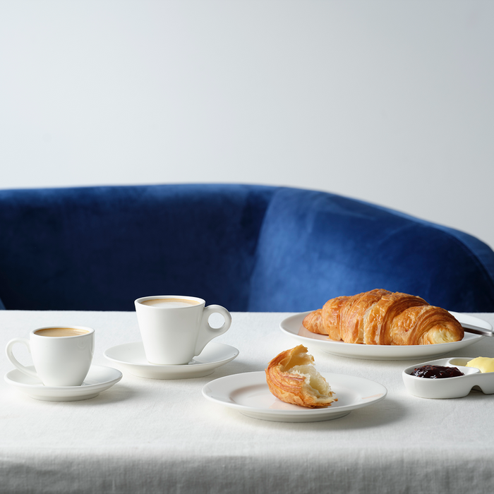 Made of clay that's malleable and great for forming detailed shapes. Created in a two firing process where it becomes vitrified during the second firing, making porcelain an extremely durable dinnerware option that is dishwasher, microwave, and oven safe.