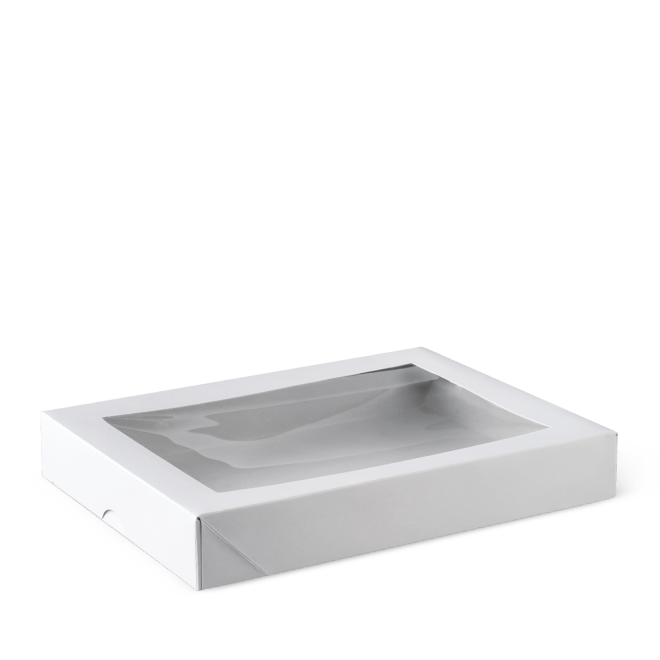 - Detpak Flat Long Window Patisserie Box White 200mm(L) x 150mm(W) x 30mm(H) - Box of 200