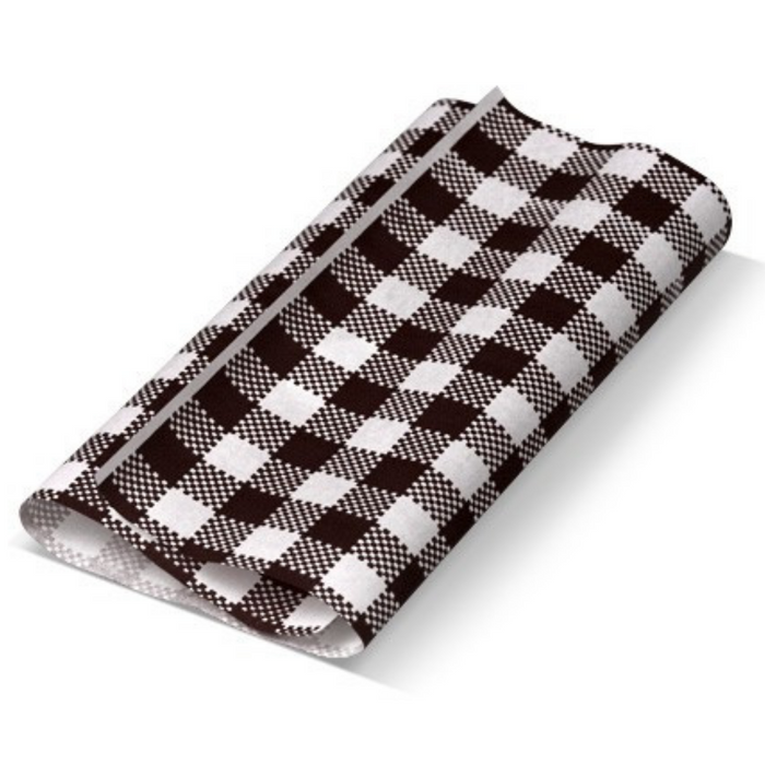 Gingham Greaseproof Paper 190mm x 310mm Black / White Check - Packet of 200 Sheets