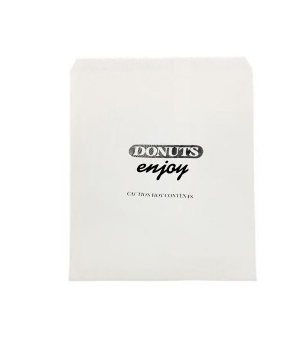 - 2 Square White Printed "Donuts Enjoy" Paper Bags 205mm(L) x 207mm(W) - Pack of 500