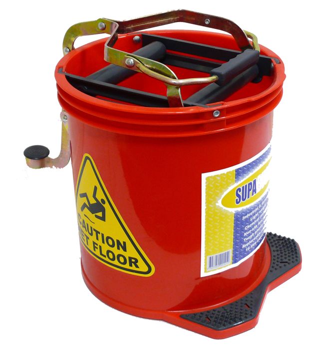 - Heavy Duty 16L Red Plastic Mop Bucket with Steel Wringer - Each