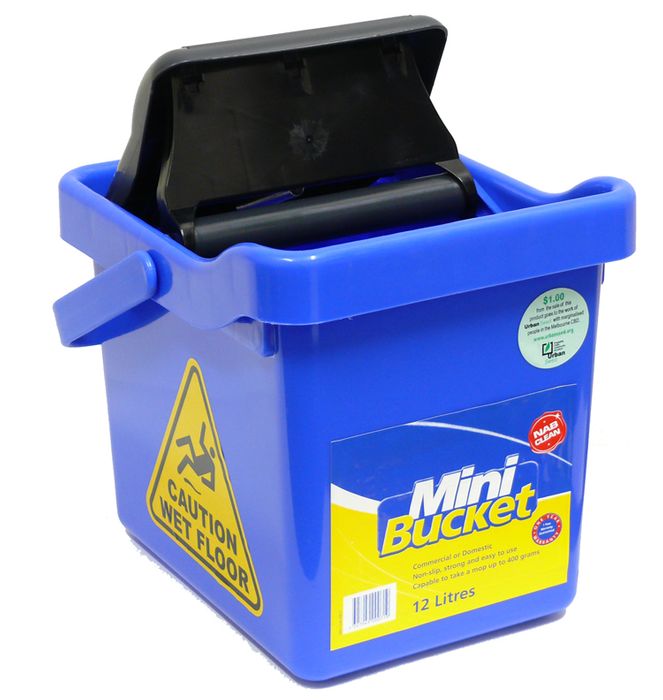 - Water Saver Mini 12L Blue Plastic Mop Bucket with Steel Wringer - Each