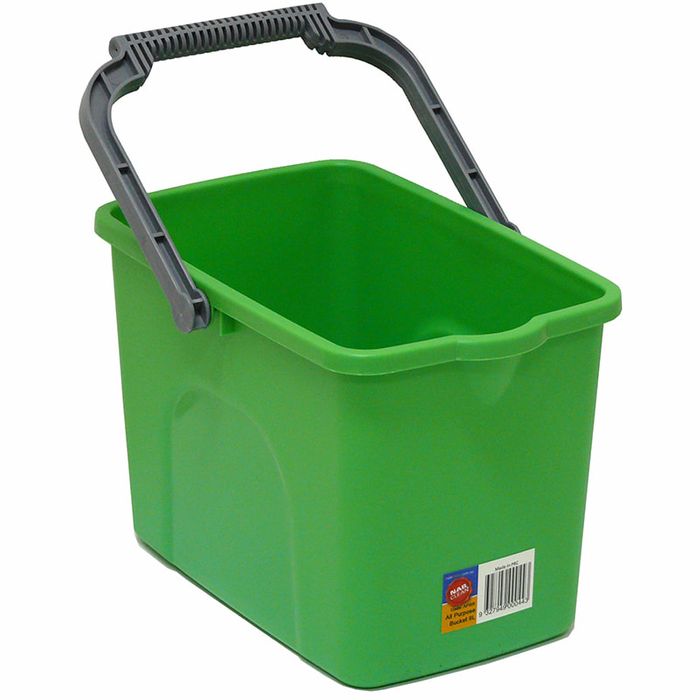 - All Purpose Heavy Duty 9L Green Rectangular Bucket with Ergonomic Handle and Pour Spout - Each