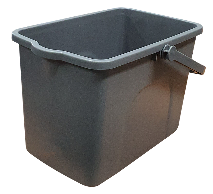 - All Purpose Heavy Duty 9L Grey Rectangular Bucket with Ergonomic Handle and Pour Spout - Each