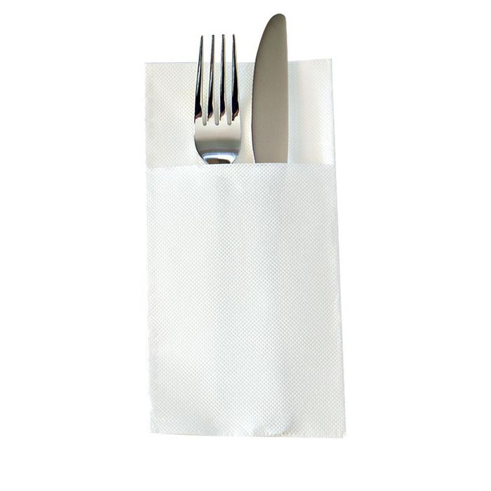 - White 2 Ply Quilted Pocket/Cutlery Fold Dinner Serviettes 1/8 GT Fold 400mm x 400mm - Box of 1,000