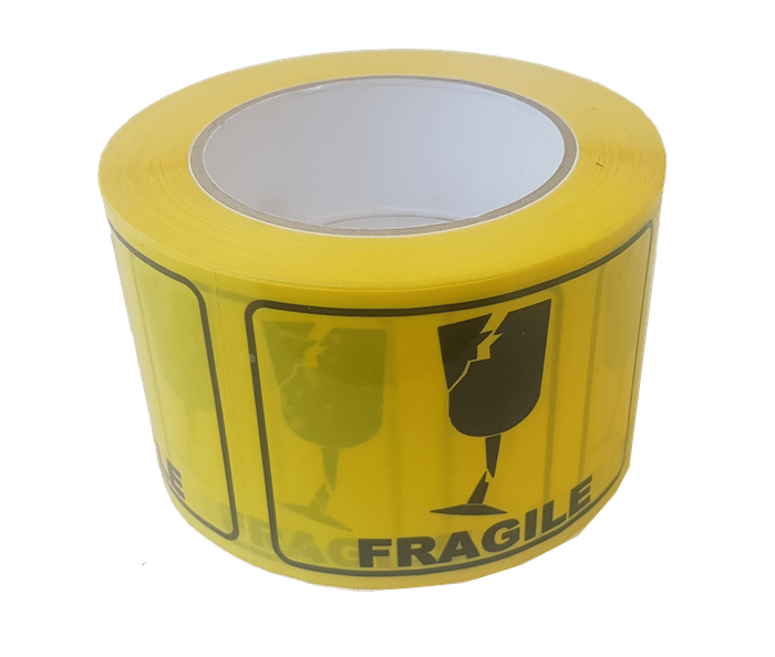 - Printed Rip-A-Labels "Fragile" 72mm X 100mm Black on Yellow - Roll of 500