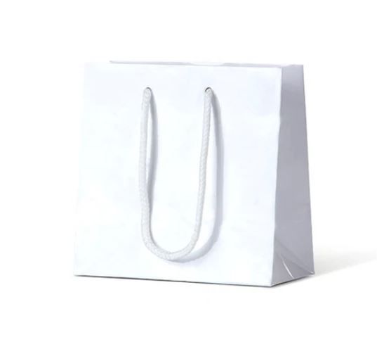 - Laminated Gloss Ruby White Paper Bags Rope Handle 330mm(L) x 250mm(W) x 125mm(H) - Box of 100