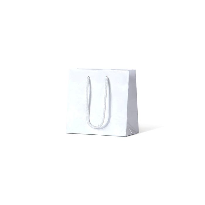 - Laminated Gloss Petite White Paper Bags With Handles 165mm(H) x 165mm(W) x 90mm(G) - Box 200
