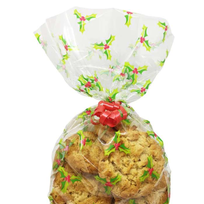 - Clear Polypropylene Cello Bags Holly Print 230mm x 100mm x 50mm 30um - Pack of 100