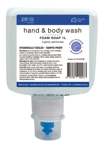 - Zexa 9700 Foaming Hand Wash 1,200 pumps per 1L - Box = 6 x 1L ***CLEARANCE***