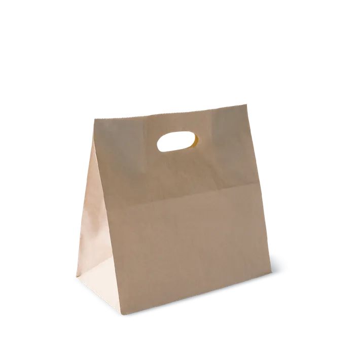 - Detpak Eco D-Cut (Die Cut) Brown Paper Bag Handle 280mm(L) x 280mm(W) + 150mm(G) - Box of 500
