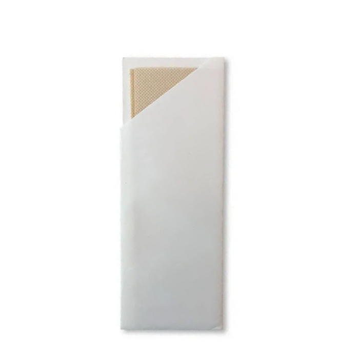 White Cutlery Pouches with Bamboo Napkin Included - Box of 1,000