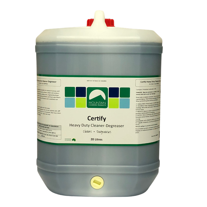 Certify is a heavy-duty cleaner degreaser. Its penetrating, emulsifying caustic formula provides a superior clean and easily removes heavy grease deposits.