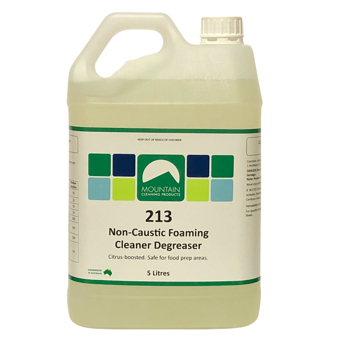 213 Foaming Cleanser is a unique high performance non-caustic foaming cleaner degreaser that is worker safe, food-safe and fully biodegradable.