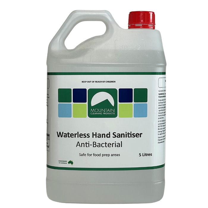 Mountain Waterless Hand SanitiserA food-prep grade hand sanitiser containing 70% v/v ethanol, killing 99.9% of germs. Our WATERLESS HAND Hand Sanitiser delivers clean, sanitised hands, fast and is ideal for hand cleaning and hygiene around food and care areas, as general protection from disease causing germs and hand sanitisation away from wet areas.