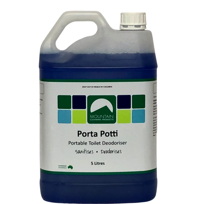 Porta Potti is for managing waste in portable toilets. Porta Potti has a combination of strong sanitisers and emulsifiers that break down solid waste and control bacteria and odours in the holding tanks of portable toilets. Fragranced with native Eucalyptus oil.