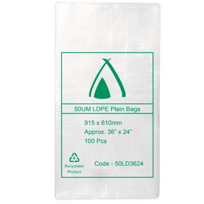 - Clear Plastic LDPE 50 Micron 36" x 24" / 915mmx 610mm - Box of 300